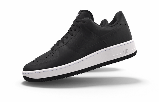 $195 NIB NEW Mens Nike Air Force 1 Black Leather Custom Low Top Athletic Shoes