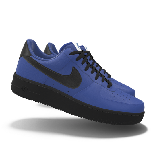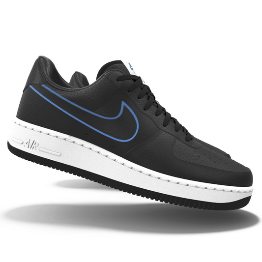 $195 NIB NEW Mens NIKE Air Force 1 Low Black & Blue Custom Leather Shoes