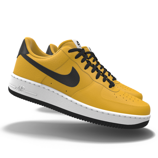 $195 NIB NEW Mens Nike Air Force 1 Low Gold & Black Leather Custom Athletic Shoes